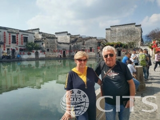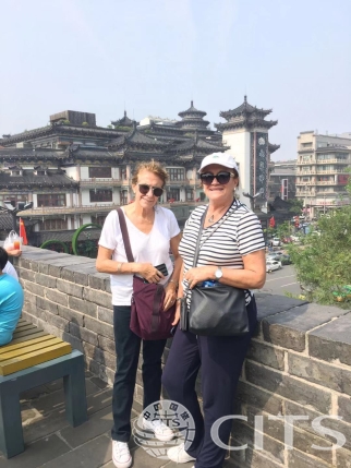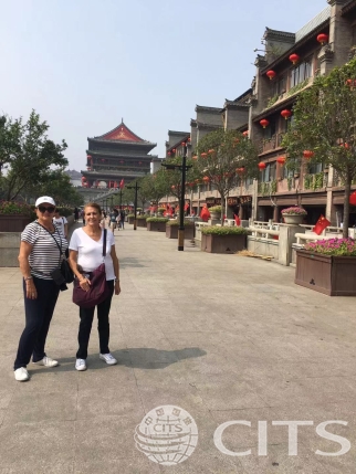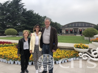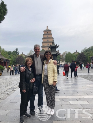 Italian Couple with American Guest at Xi'an Wild Goose Pagoda Square -